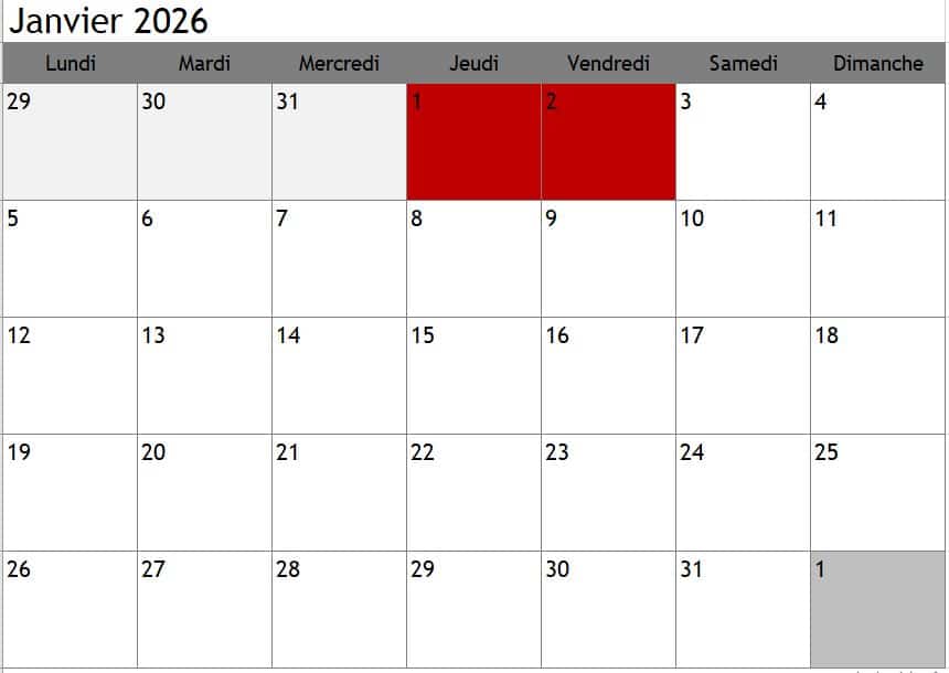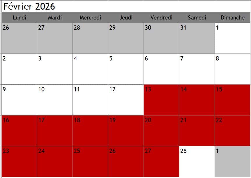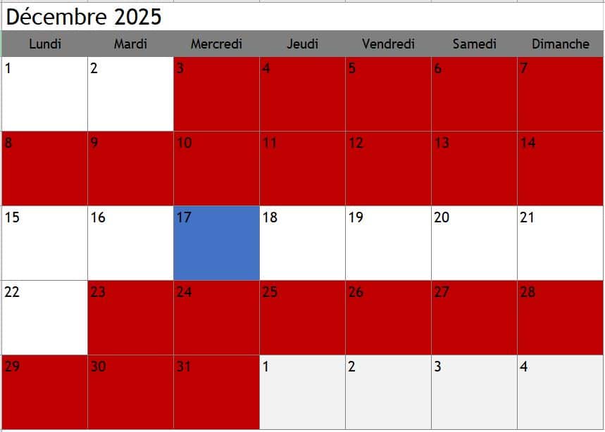 Calendrier 2025/2026 – mis à jour le 10/12/2025